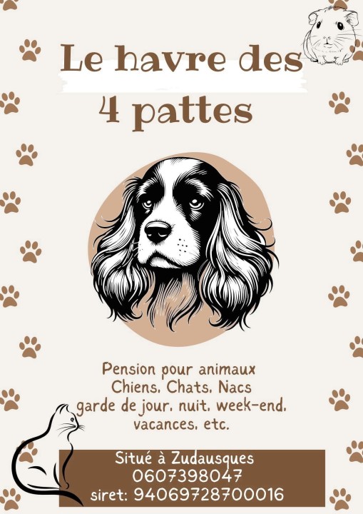 Le Havre des 4 Pattes est une pension animalière située sur la commune de Zudausques, accueillant chiens, chats et petits animaux.
