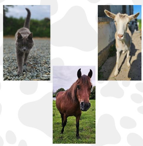 Elle assure la pension pour NAC tels que lapins, reptiles, rongeurs, oiseaux et furets, ainsi que des visites à domicile pour chats, chiens, NAC, chevaux et animaux de la ferme.