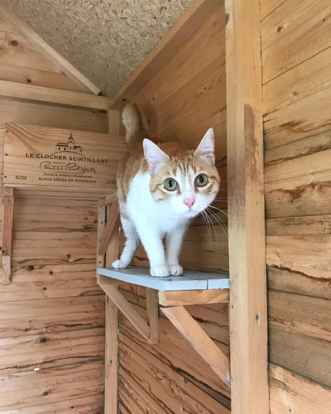 Chat s'amuse est une pension pour chats située entre Saint-Nazaire et Pornichet, offrant un cadre paisible en pleine campagne, à proximité de la Route Bleue (D213), facilitant ainsi l'accès pour les vacanciers. L'établissement propose des espaces privatifs de 4m² pour chaque chat, comprenant un chalet et une terrasse sécurisée. Ces espaces sont aménagés pour permettre aux chats de se cacher, se reposer et jouer, avec des installations en hauteur. Les familles de plusieurs chats habitués à vivre ensemble peuvent séjourner dans un même chalet.