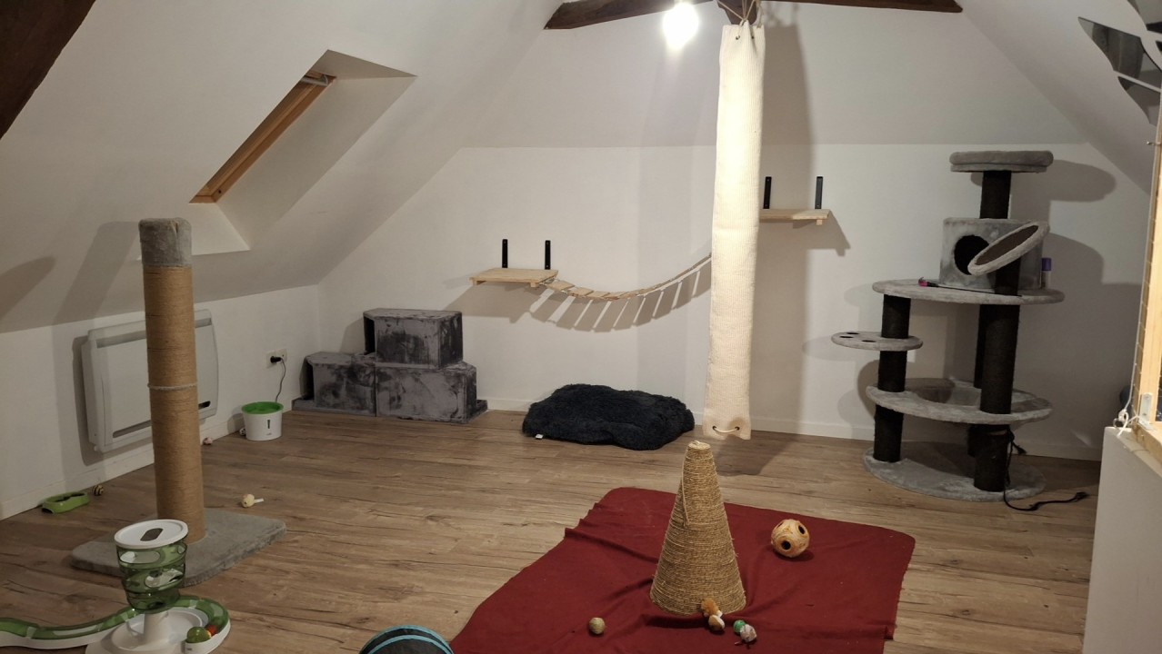 Les chats sont accueillis uniquement par famille pour un confort maximum et sans mélange avec les chats extérieurs. Deux chambres sont spécialement dédiées pour garantir leur sérénité et leur intimité.