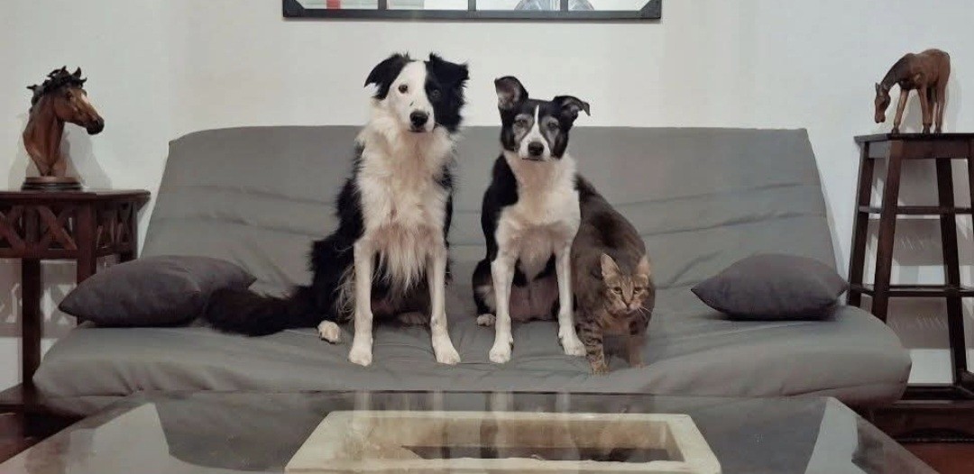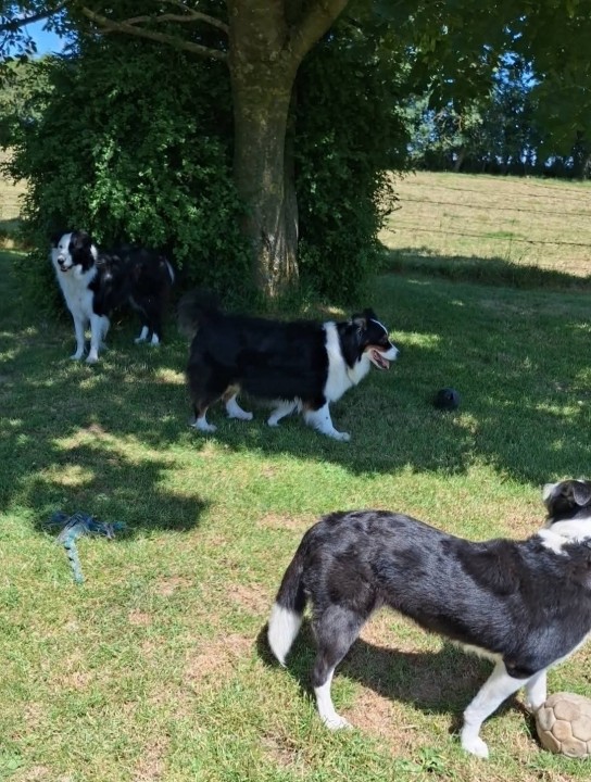Les chiens vivent avec eux dans la maison, en compagnie de leurs deux border collies sociables et leurs cinq chats, habitués à recevoir d'autres chiens. L'environnement est familial, sécurisant, et propice à la vie de groupe.