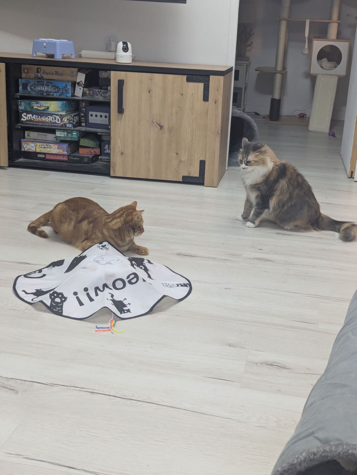 Le propriétaire fournira la nourriture, le substrat à litière, la caisse à litière. Concernant le frais, le propriétaire peut amener du frais pour le début de garde, qui sera conservé au frigo du petsitter et donné quotidiennement. Si la garde est longue ou si le client préfère, le petsitter peut fournir le frais, ajoutant un supplément au solde total. Le client fournira également selon ce qu’il pense le mieux convenir à son animal, des possibles effets personnels (paniers, jouets, plaids, fond de cage…)